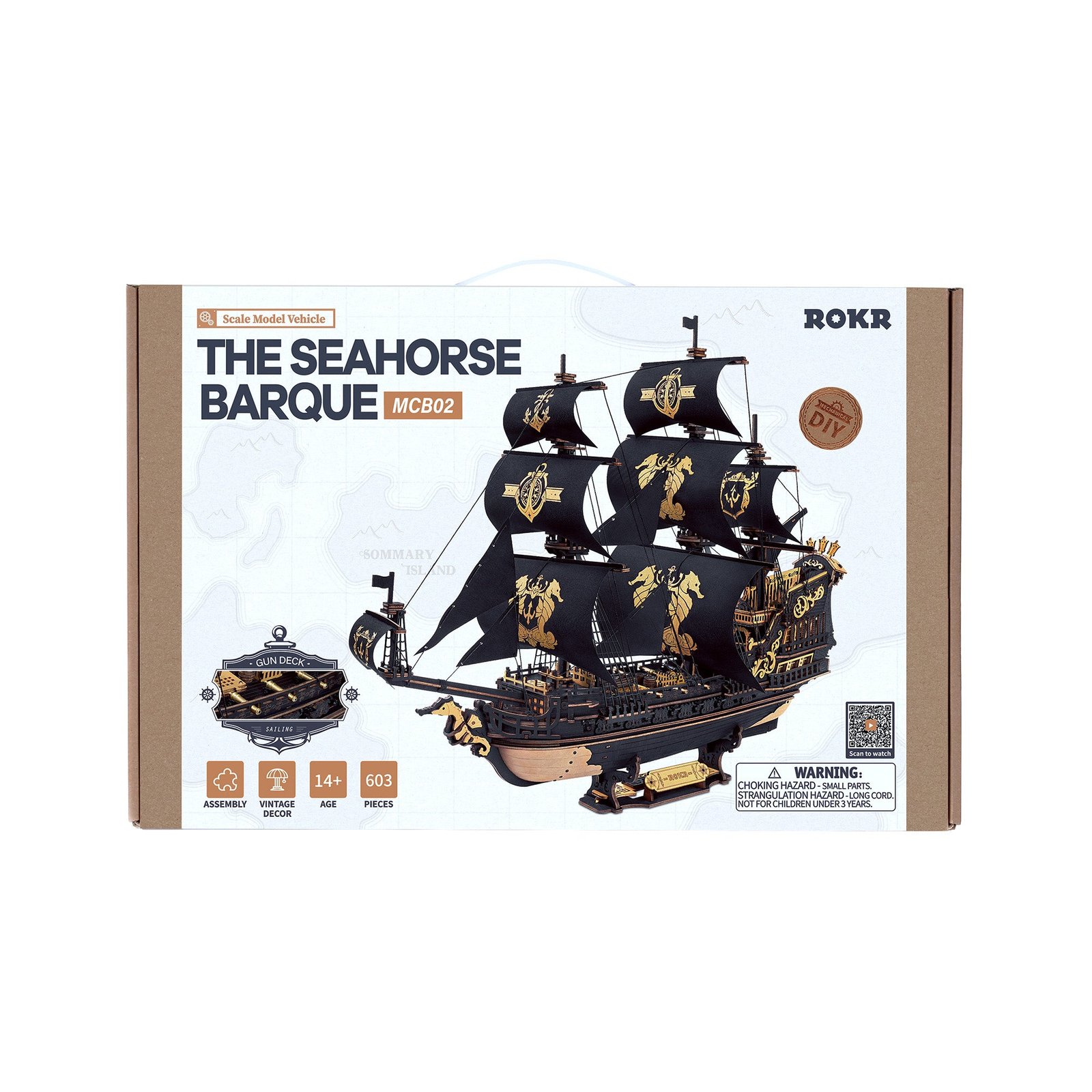 Embark on a journey of craftsmanship and elegance with this The Seahorse Barque 3D wooden puzzle, a true tribute to nautical history. This intricate puzzle brings to life the power and beauty of a classic barque warship, meticulously designed with a striking black and gold finish. Made from high-quality wood, it allows you to assemble a stunning ship complete with bold black sails that evoke mystery and dominance, while the rich gold accents highlight the ship’s detailed craftsmanship, embodying both luxury and strength. At the bow, the seahorse emblem proudly serves as the ship’s mascot, symbolizing resilience, grace, and the unwavering spirit of the sea. Whether as a collector’s item or a captivating decorative piece, this Black and Gold Barque Warship Puzzle makes a dramatic statement, adding nautical charm and historical grandeur to any space.