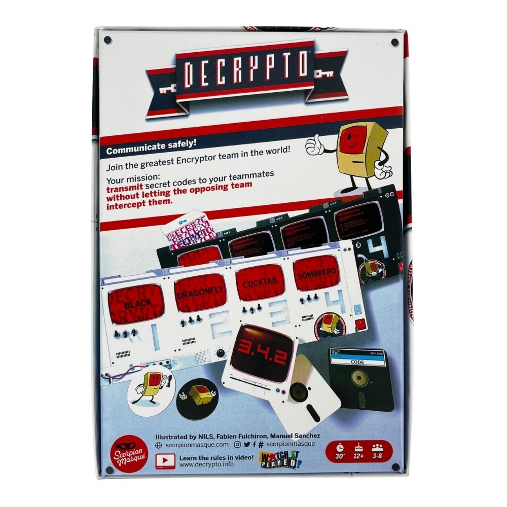 Decrypto is a clever team-based party game of codebreaking, deduction, and deception. Compete to send and intercept secret messages while keeping your own code safe. With its Cold War spy theme and smart gameplay, Decrypto is perfect for adults and teens who enjoy strategy, communication, and wordplay. The English edition is ideal for casual parties, game nights, or competitive play.