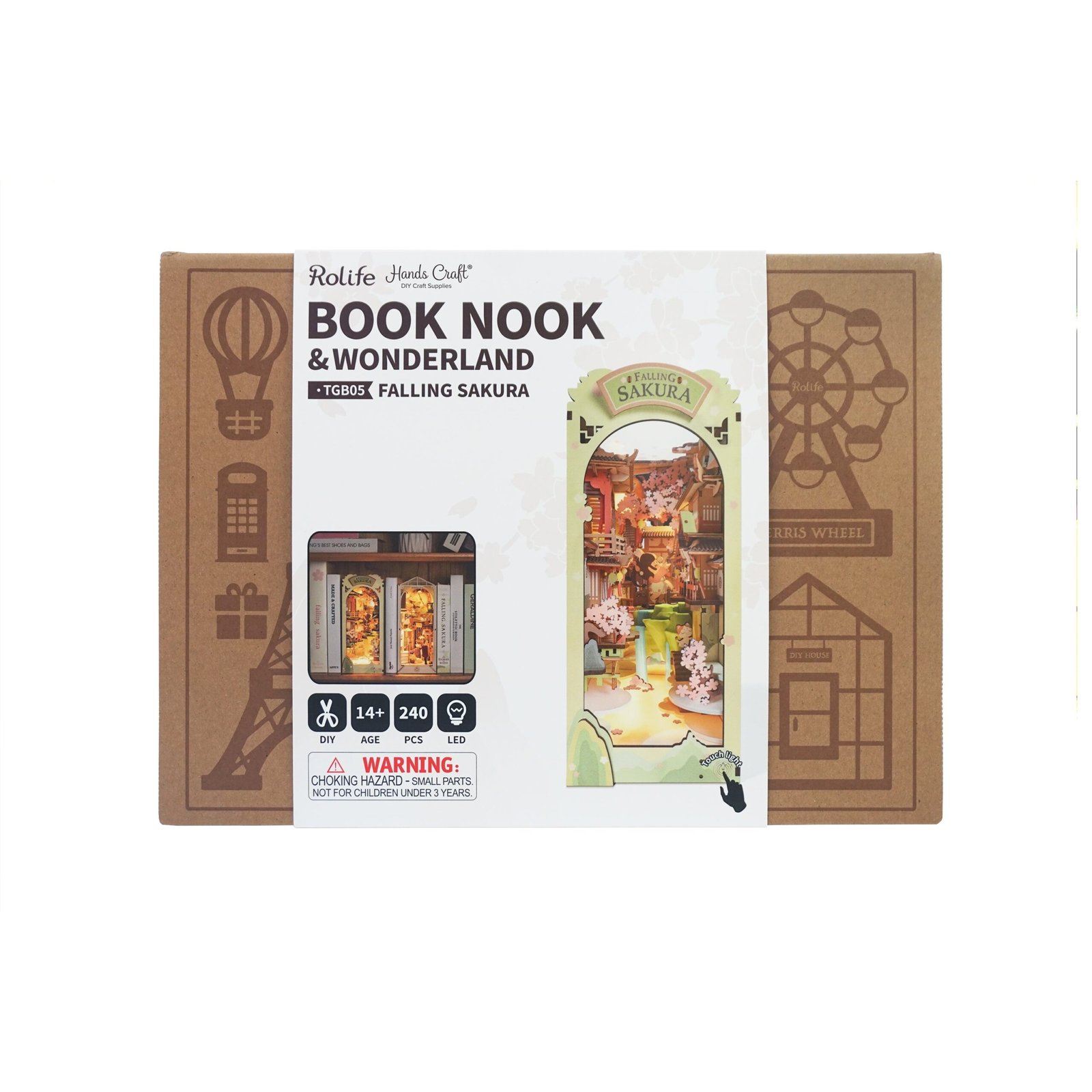 Add this crowd favorite, and be transported halfway across the world with our Falling Sakura. This stunning piece is sure to capture your imagination with its Japanese architecture and cherry blossom trees. The attention to detail is remarkable, with intricate architecture, airy cherry blossom trees, and a delightful tram that will transport you to another country. Check out why everyone loves our Falling Sakura book nooks!