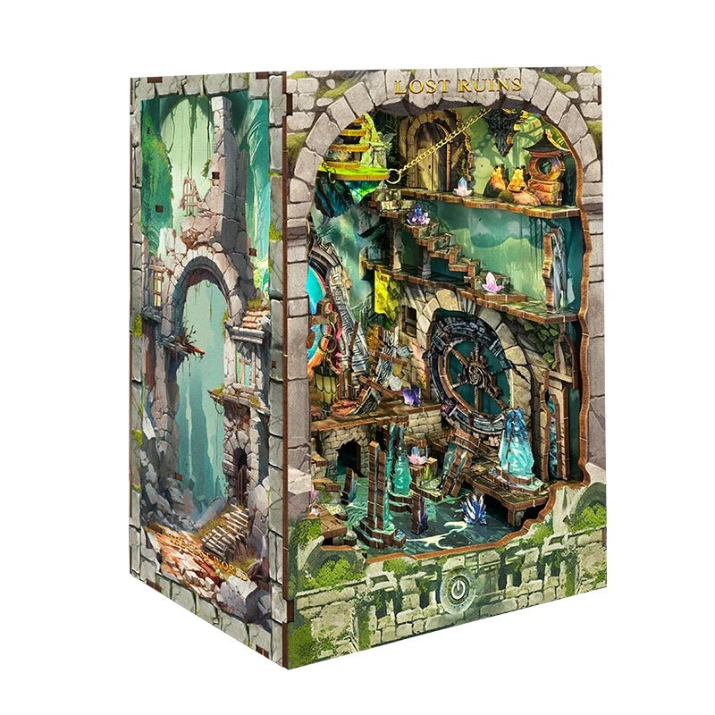 Lost Ruins DIY Fantasy Book Nook with LED Crystals - product showcaseLost Ruins DIY Fantasy Book Nook with LED Crystals - detailed viewLost Ruins DIY Fantasy Book Nook with LED Crystals - assembly detailsLost Ruins DIY Fantasy Book Nook with LED Crystals - LED lighting featureLost Ruins DIY Fantasy Book Nook with LED Crystals - completed displayLost Ruins DIY Fantasy Book Nook with LED Crystals - kit componentsLost Ruins DIY Fantasy Book Nook with LED Crystals - interior view