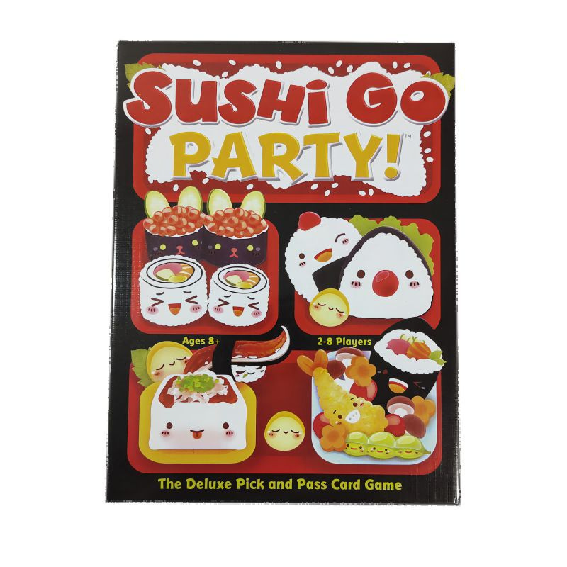 Sushi Go Party! turns any table into a conveyor belt of fun. Draft your favorite sushi dishes, stack tasty combos, and score the most points in this fast, cute, and endlessly replayable card-drafting party game.