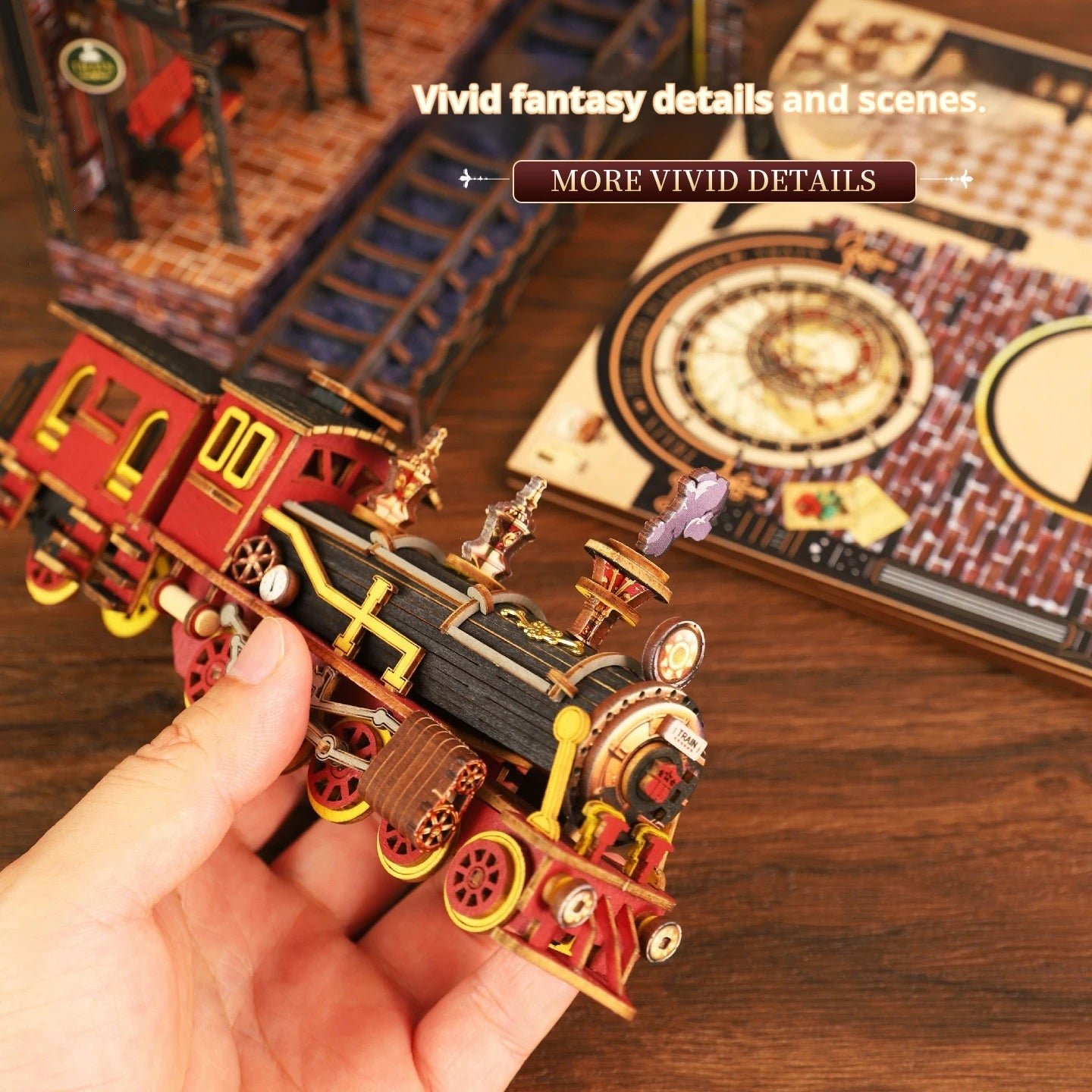 Every wooden piece, from the glowing station lamps to the tiny ticket signs, tells a story of time standing still. As you assemble it, you’ll feel like a craftsman shaping a world of nostalgia — one beam, one brick, one memory at a time.