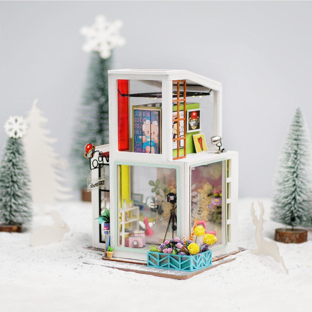 [TINY FURNITURE & ACCESSORIES] This model dollhouse room comes equipped with all the materials and tools you need to recreate a home with a balcony to fall in love, and much more to give you a detail-oriented and well-furnished feel to your tiny space. You can even add flooring. With such amazing decor and details, this modern DIY house is sure to impress.